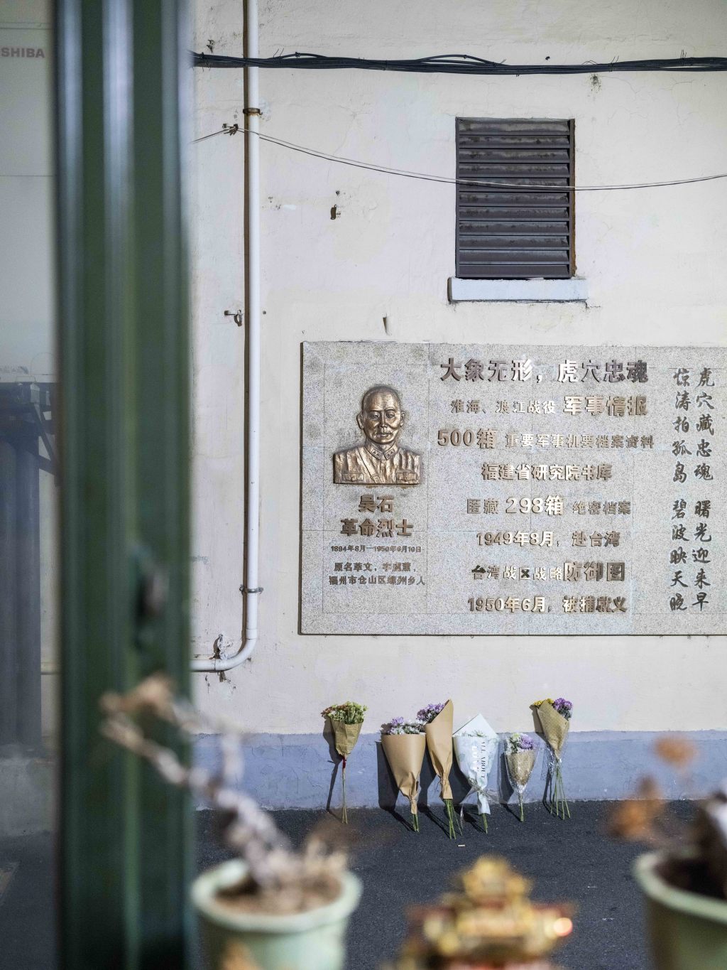 2025年10月26日,上海愚园路,吴石纪念铭牌下,陆续有市民自发前来献花凭吊。