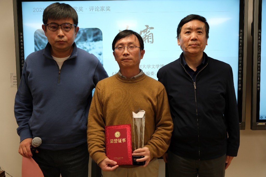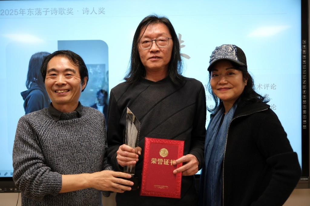 评论家姜涛、张桃洲为评论家奖得主冷霜颁奖